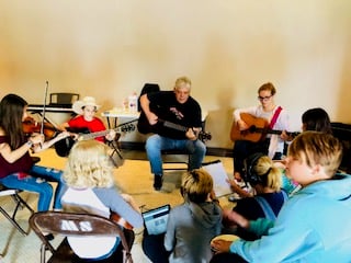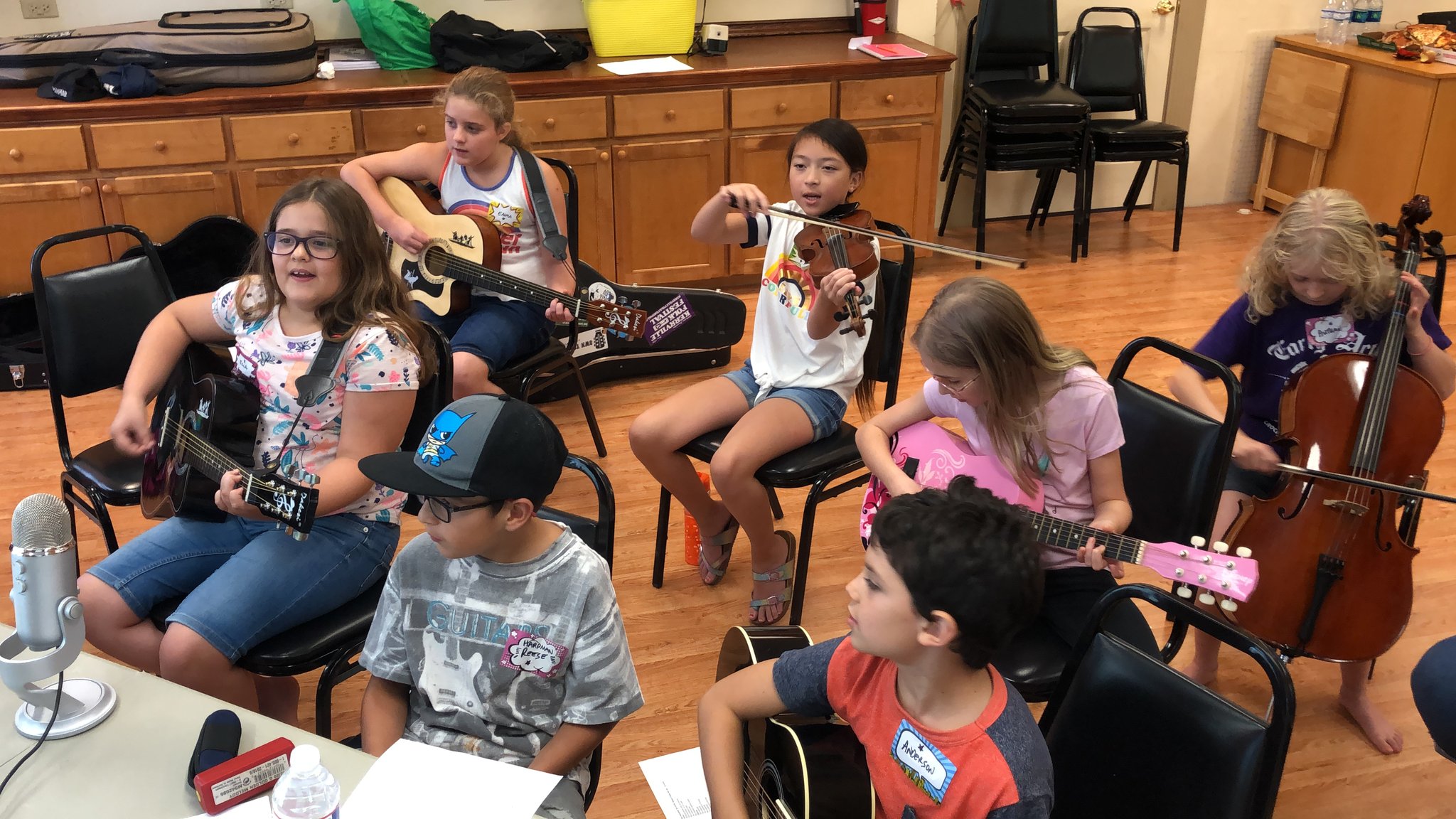We write group songs, sharpen musicianship skills, explore poetry and lyrics, and dive into creative projects like rock painting with positive affirmations and goal setting that actually sticks. Along the way, kids build collaboration skills, self-expression, and the courage to share their voices.